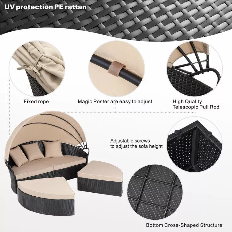 • Contemporary style: Featuring trendy appearance and practical design, this outdoor round sofa set with retractable canopy is an ideal leisure and holiday companion to relax and enjoy yourself. As an indispensable part of your lazy time, this daybed will definitely highlight your patio, balcony, deck, backyard, porch, and pool, perfect for party and family use
