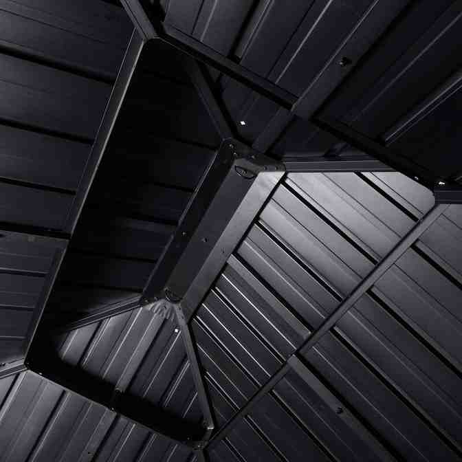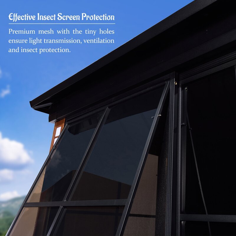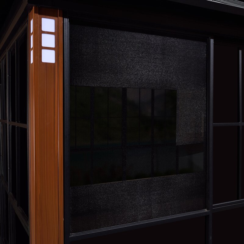 With the SummerBella outdoor hardtop gazebo, you can make your backyard come to life. The double-tier roof not only adds style to your gazebo but also offers shade from the harsh sun rays while allowing the right amount of airflow to pass through. The sturdy powder-coated galvanized steel roof is rust-resistant, can be the perfect spot for all your outdoor entertainment needs all season. Four durable aluminum posts with sliding doors keep it stable for years of enjoyment. The mesh netting of each wind panel will protect you from bugs, and fully closed sliding doors will give privacy when needed. This gazebo adapts well to many types of patio decor. Customizing it your way for making your yard more visually appealing, and the large interior provides plenty of space to make memories and share a lot of activities with family and friends.