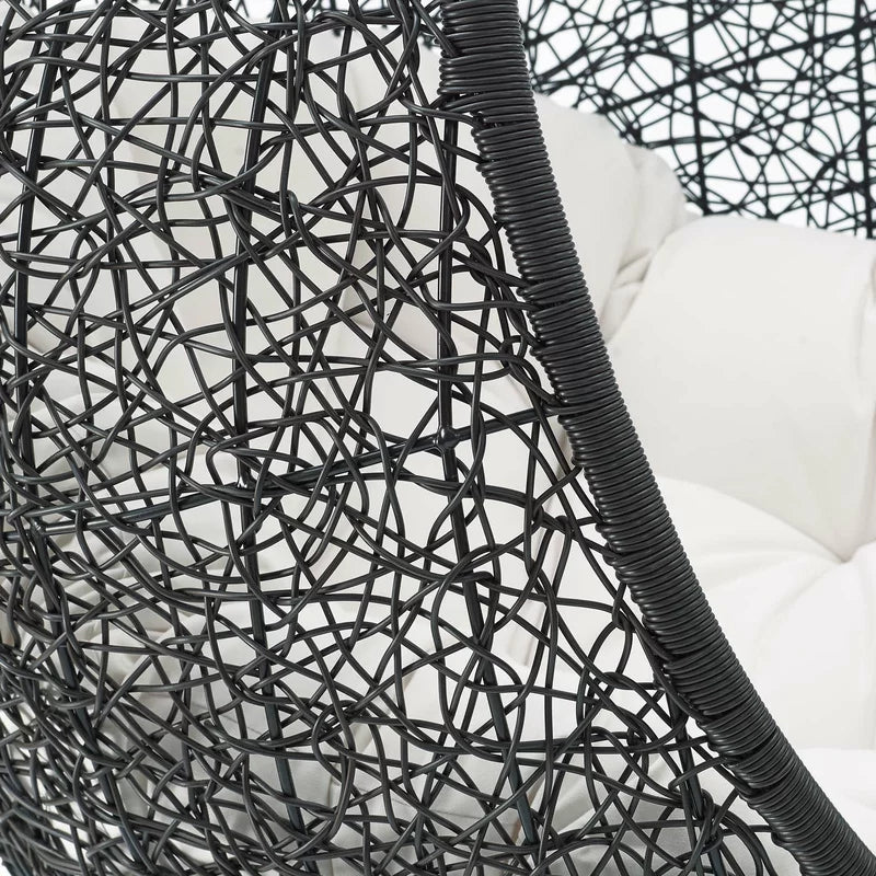 Embark on moments of metamorphosis and rebirth with an exotic hanging outdoor swing chair. Transform the mundane to heightened states of consciousness with Wisser Outdoor Swing Chair. This hanging swing chair is comprised of a sturdy espresso metal stand and rattan seat. Surround yourself with plush Sunbrella® fabric cushions to complete entry into a relaxed state in the Wisser Hanging Chair.