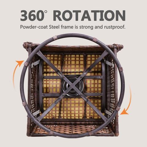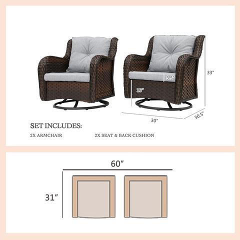 • Swivel-action chairs perform a 360° spin and gentle rocking motion